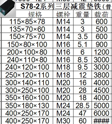 三層減震墊鐵尺寸規(guī)格: