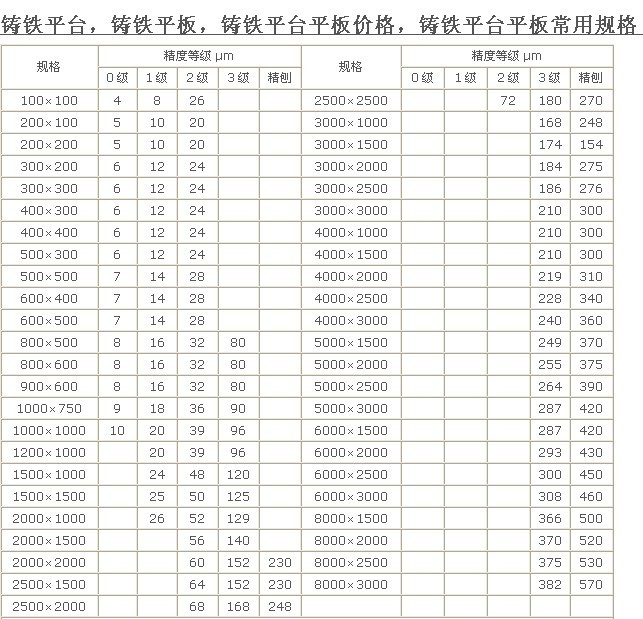 鑄鐵平臺標準規(guī)格尺寸: